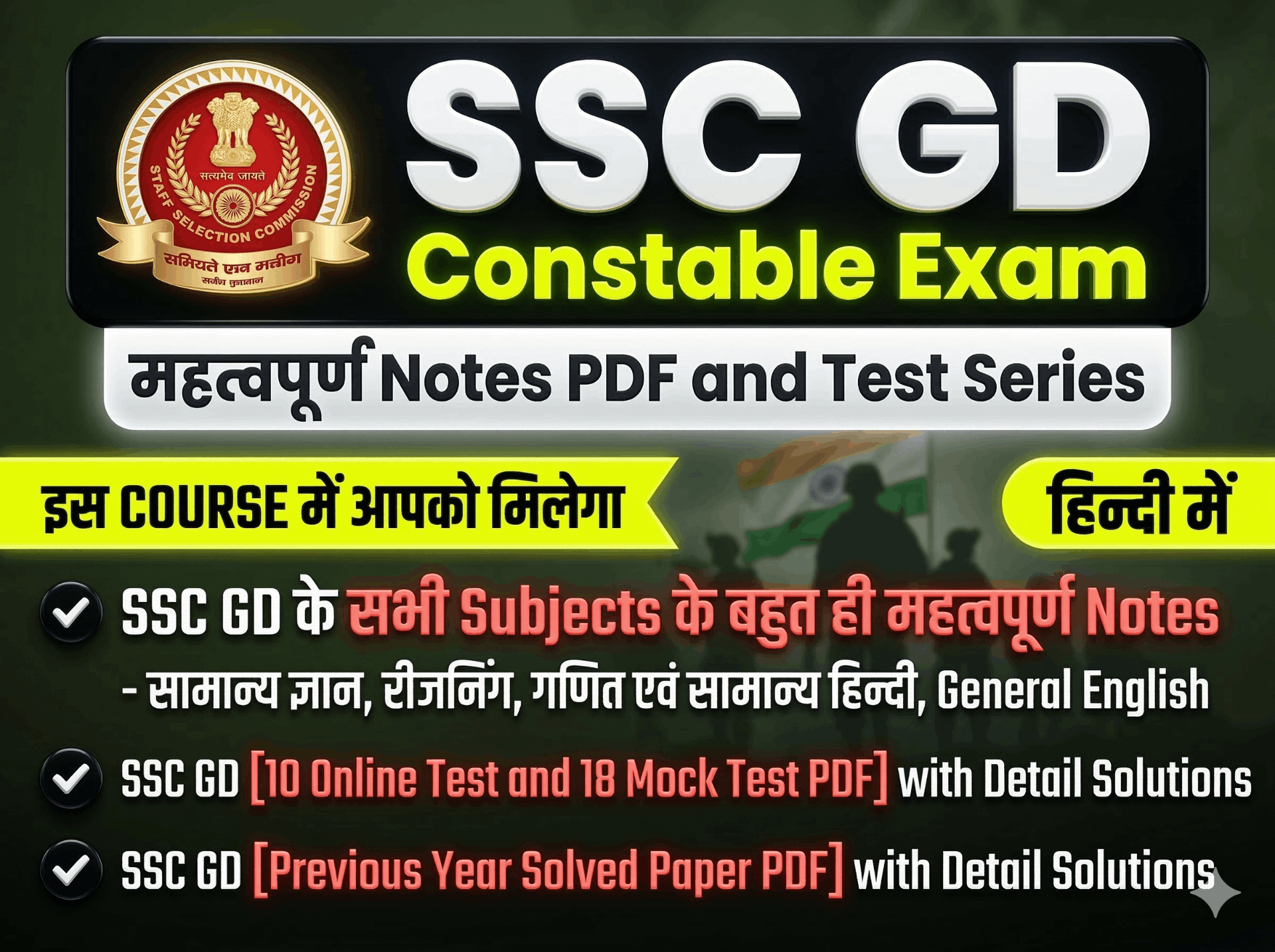 🔥 SSC GD Constable की तैयारी का Complete Solution 🔥 इस SSC GD Constable Exam कोर्स में आपको मिलेगा संपूर्ण Exam-Oriented Study Material और Practice Sets जो आपकी सफलता की संभावना को कई गुना बढ़ाएगा। 📌 इस Course में क्या मिलेगा? 👇 👉 सभी Subjects के महत्वपूर्ण Notes: 🌍 सामान्य ज्ञान (General Knowledge) 🧠 रीजनिंग (Reasoning) ➕ गणित (Mathematics) ✍️ सामान्य हिन्दी (General Hindi) ✍️ General English 👉 Subject-wise Online Test Series – हर विषय की गहन तैयारी के लिए 📝 👉 SSC GD Previous Year Solved Paper PDFs – Detailed Solutions के साथ 📄 👉 SSC GD 18 Mock Test PDFs – Detailed Solutions के साथ परीक्षा जैसा अनुभव 💻 👉 सभी PDFs को Mobile में Download करने और Print करने की सुविधा 📲🖨️ 🔥 इस Course की खासियत: 👉Exam-oriented कंटेंट 🎯 👉यह Course Regularly Update किया जाएगा 📆 👉आसान और समझने योग्य Notes व Solutions ✨ 👉 आज ही इस Course को खरीदें और अपनी SSC GD Constable Exam 2025-26 की तैयारी को अगले स्तर पर ले जाएं! 🚀 आप सभी को नितिन गुप्ता की ओर से ढेर सारी शुभकामनाएँ! 🙏👍 🌐 Language: हिन्दी 🇮🇳 📆 Validity: 1 Year ⏳