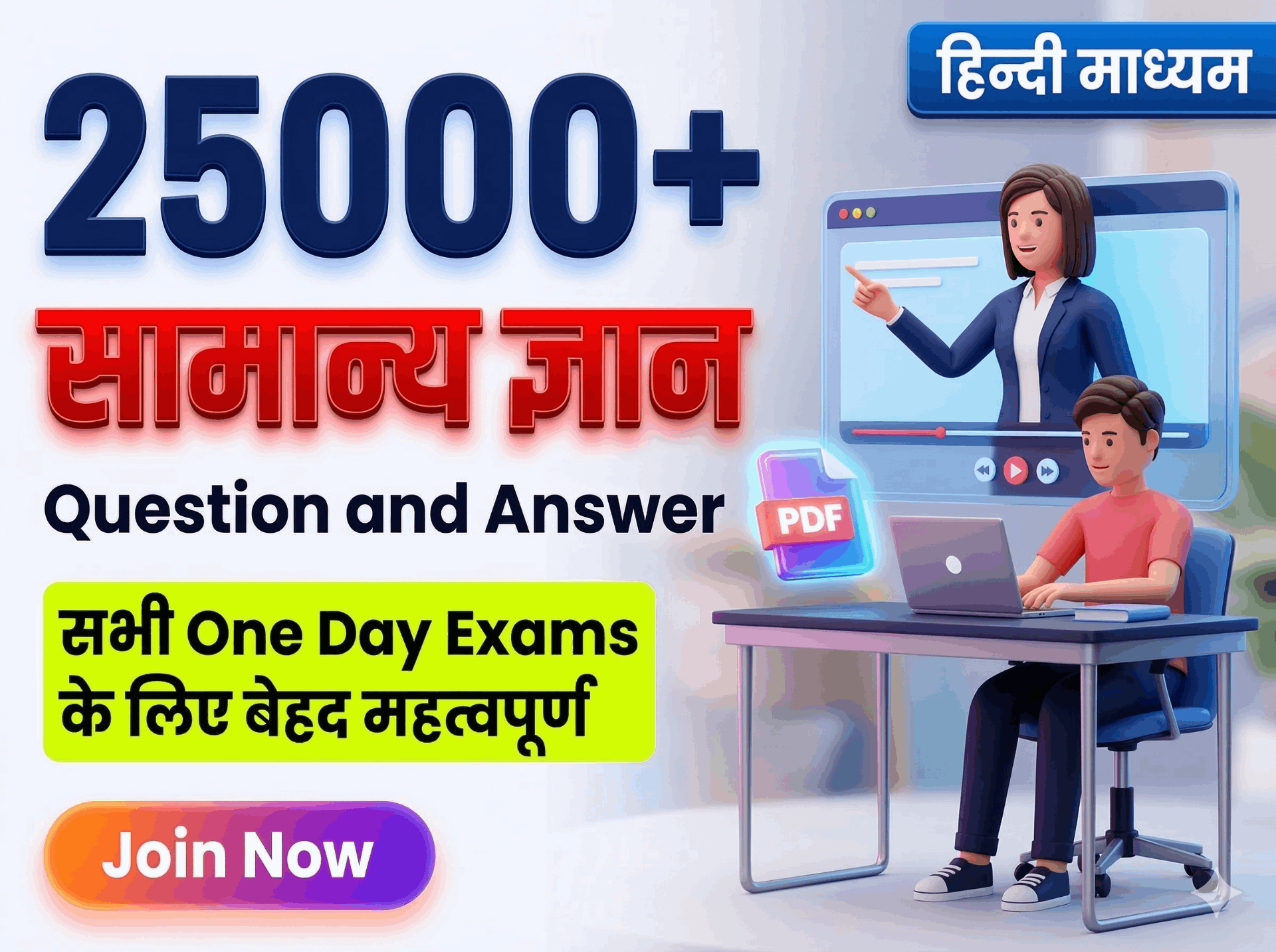 тЬи рд╕рднреА OneDay Govt Exams рдХрд╛ Complete Solutions тЬи ЁЯУМ рдЗрд╕ Course рдореЗрдВ рдЖрдкрдХреЛ рдорд┐рд▓реЗрдЧрд╛ ЁЯТп ЁЯСЙ 25000+ рд╕реЗ рдЕрдзрд┐рдХ Most Important рд╕рд╛рдорд╛рдиреНрдп рдЬреНрдЮрд╛рди Question рдФрд░ Answer рдХреА PDF ЁЯУЪ ЁЯСЙ рдпрд╣ рд╕рд╛рдордЧреНрд░реА рд╡рд┐рд╢реЗрд╖ рд░реВрдк рд╕реЗ RRB, SSC рдФрд░ рдЕрдиреНрдп рд╕рднреА One Day Exams рдХреЗ рд▓рд┐рдП рддреИрдпрд╛рд░ рдХреА рдЧрдИ рд╣реИ ЁЯОп ЁЯСЙ рд╕рднреА PDFs рд╣рд┐рдиреНрджреА рднрд╛рд╖рд╛ рдореЗрдВ рдЙрдкрд▓рдмреНрдз рд╣реЛрдВрдЧреА ЁЯЗоЁЯЗ│ ЁЯФе рдЗрд╕ Course рдХреА рдЦрд╛рд╕рд┐рдпрдд: ЁЯСЙ рдЖрдкрдХреЛ рдПрдХ рд╣реА рдЬрдЧрд╣ рдкрд░ рд╕рдВрдкреВрд░реНрдг GK Questions рдФрд░ Answers рдХрд╛ рд╕рдВрдЧреНрд░рд╣ рдорд┐рд▓реЗрдЧрд╛ ЁЯУЦ ЁЯСЙ рд╕рд╛рдордЧреНрд░реА рдХреЛ рдЗрд╕ рддрд░рд╣ рд╕реЗ рддреИрдпрд╛рд░ рдХрд┐рдпрд╛ рдЧрдпрд╛ рд╣реИ рдХрд┐ рдпрд╣ Exam-Oriented рдФрд░ рд╕рдордп рдмрдЪрд╛рдиреЗ рд╡рд╛рд▓реА рд╣реЛ тП▒я╕П ЁЯСЙ рдпрд╣ Course рдЖрдкрдХреА Competitive Exams рдореЗрдВ Selection Chances рдХреЛ рдХрдИ рдЧреБрдирд╛ рдмрдврд╝рд╛рдПрдЧрд╛ ЁЯЪА ЁЯСЙ рдЖрдЬ рд╣реА рдЗрд╕ Course рдХреЛ рдЦрд░реАрджреЗрдВ рдФрд░ рдЕрдкрдиреА рддреИрдпрд╛рд░реА рдХреЛ рдЕрдЧрд▓реЗ рд╕реНрддрд░ рдкрд░ рд▓реЗ рдЬрд╛рдПрдВ! ЁЯТк рдЖрдк рд╕рднреА рдХреЛ рдирд┐рддрд┐рди рдЧреБрдкреНрддрд╛ рдХреА рдУрд░ рд╕реЗ рдвреЗрд░ рд╕рд╛рд░реА рд╢реБрднрдХрд╛рдордирд╛рдПрдБ! ЁЯЩПЁЯСН ЁЯМР Language: рд╣рд┐рдиреНрджреА ЁЯЗоЁЯЗ│ ЁЯУЖ Validity: 1 Year тП│