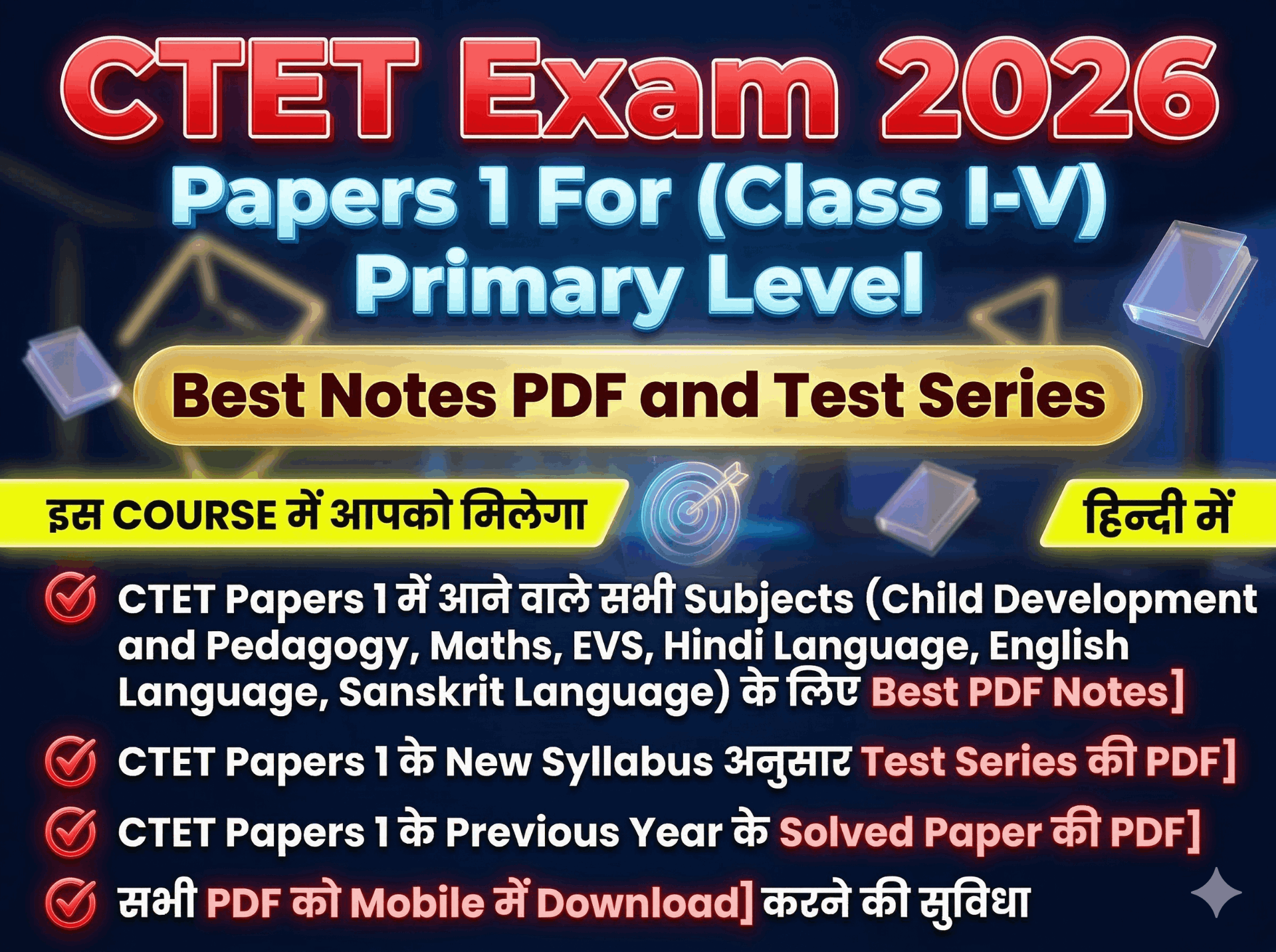 🔥 CTET Primary Level Exam का Complete Solution 🔥 इस CTET Papers 1 (Class I-V) Primary Level कोर्स में आपको मिलेगा Exam-Oriented Study Material और Practice Sets जो आपकी सफलता की संभावना को कई गुना बढ़ाएंगे। 📌 इस Course में क्या मिलेगा? 💯 ✅️ सभी Subjects के Best PDF Notes (New Syllabus अनुसार): 👶 Child Development and Pedagogy ➕ Mathematics (Maths) 🌱 Environmental Studies (EVS) ✍️ Hindi Language 📖 English Language 🕉️ Sanskrit Language ✅️ Test Series PDFs (New Syllabus अनुसार) – बेहतर अभ्यास के लिए 📝 ✅️ Previous Year Solved Paper PDFs – परीक्षा पैटर्न समझने के लिए 📄 ✅️ सभी PDFs को Mobile में Download करने और Print करने की सुविधा 📲🖨️ 🔥 इस Course की खासियत: 👉यह Course आपकी CTET Primary Level (Class I-V) की तैयारी के लिए रामबाण सिद्ध होगा 🎯 👉इस Course को Regularly Update किया जाएगा 📆 👉समय-समय पर नए PDF Notes और Test Series PDFs जोड़े जाएंगे ✨ 👉 आज ही इस Course को खरीदें और अपनी CTET की तैयारी को अगले स्तर पर ले जाएं! 🚀 आप सभी को नितिन गुप्ता की ओर से ढेर सारी शुभकामनाएँ! 🙏👍 🌐 Language: Hindi 🇮🇳 📆 Duration: 1 Year ⏳