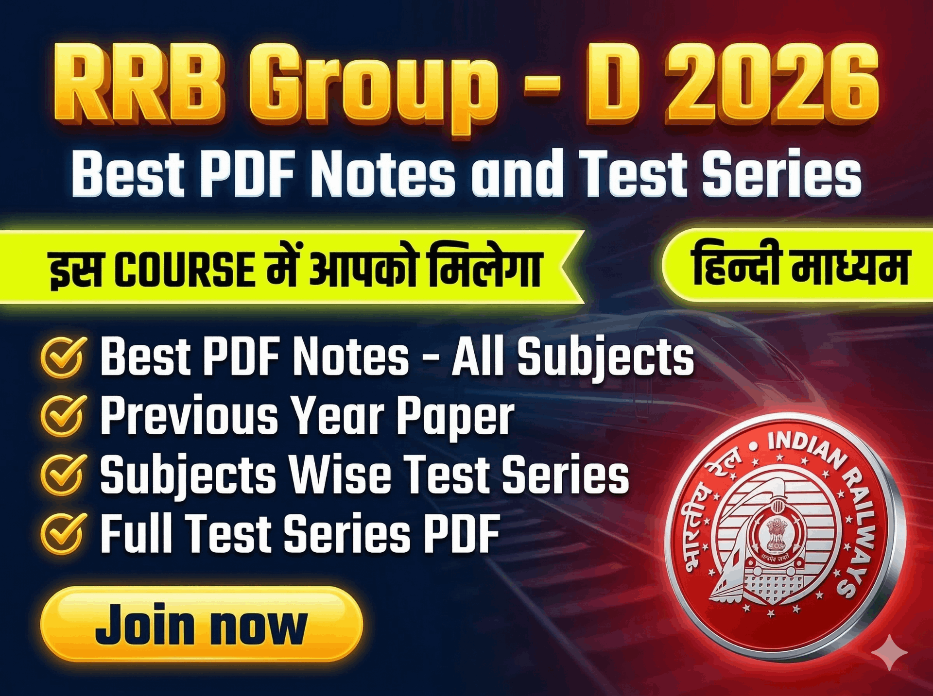 💥 RRB Group - D 2026 💥 के इस Course में आपको मिलेगा 💯 ✅️ All Subjects Best PDF Notes (GK, Current Affairs, Maths, Reasoning & Science) 📚 ✅️ Previous Year Solved Paper PDFs 📄 ✅️ 10 Online Full Tests 💻 ✅️ Subject-wise Test Series 📝 ✅️ सभी PDF को मोबाइल में Download करने व Print करने की सुविधा 📲🖨️ 🔥 यह Course आपकी RRB Group-D की तैयारी के लिए रामबाण सिद्ध होगा! इसमें सभी Subjects के लिए Best Notes दिए गए हैं। यह Course RRB Group - D 2026 के Exam होने तक Regular Update किया जाएगा और नए PDF Notes व Test Series PDFs समय-समय पर जोड़े जाएंगे। 👉 आज ही खरीदें और अपनी तैयारी को बेहतर बनाए! 🚀 आप सभी को नितिन गुप्ता की ओर से All The Best! 🙏👍 📆 Duration: 1 Year 🌐 Language: Hindi Medium