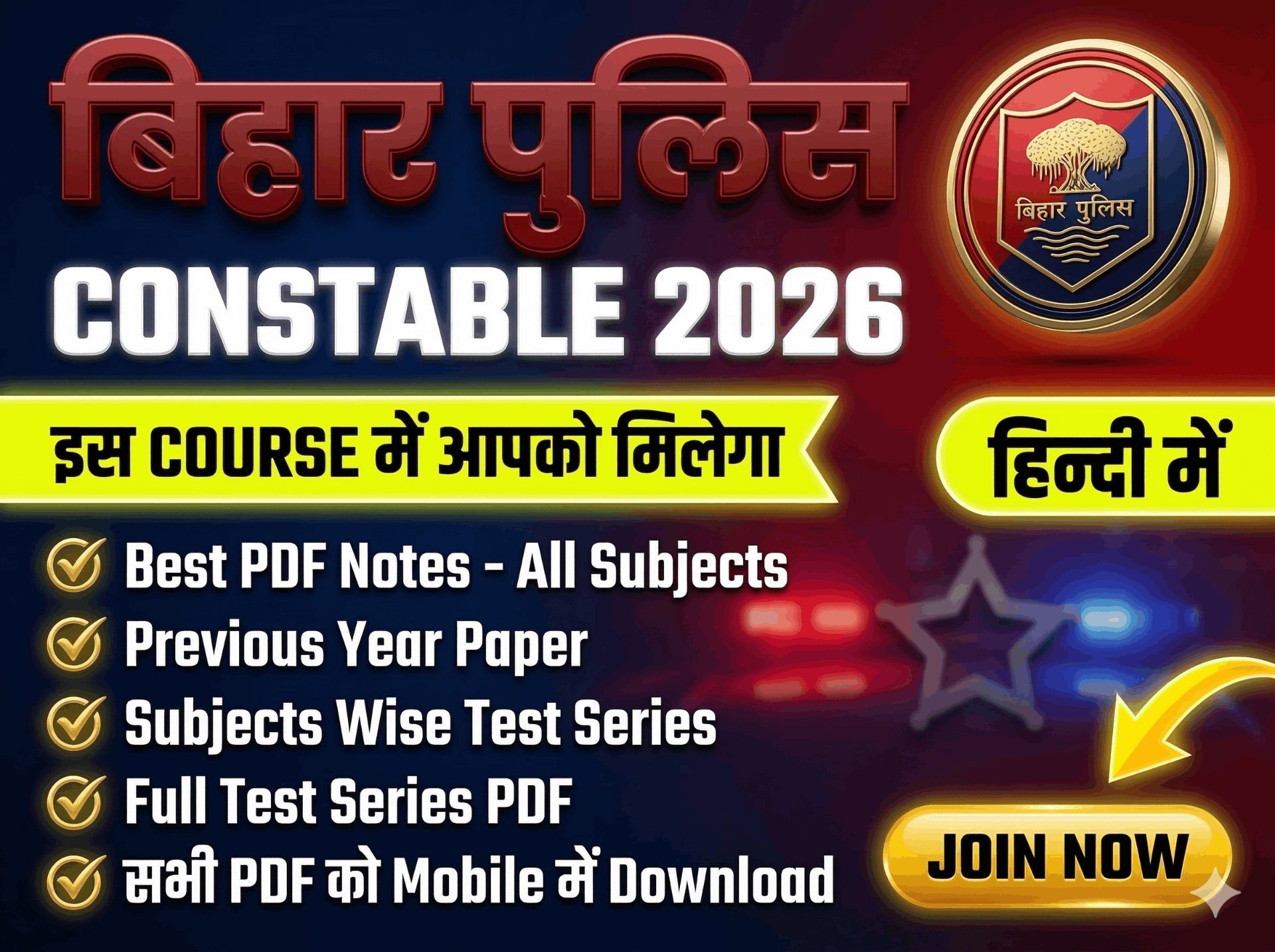 🔥 Bihar Police Constable 2026 की तैयारी का Complete Solution 🔥 इस 💥 Bihar Police Constable 2026 💥 कोर्स में आपको मिलेगा Exam-Oriented Study Material जो आपकी तैयारी को और मजबूत बनाएगा। 📌 इस Course में क्या मिलेगा? 💯 ✅️ सभी Subjects के Best PDF Notes: 📖 English ✍️ Hindi 🌍 General Awareness 📰 Current Affairs 🔬 Science (Physics, Chemistry, Biology) 📜 History 🗺️ Geography 🏛️ Polity 💰 Economics ✅️ Previous Year Solved Paper PDFs – परीक्षा पैटर्न को समझने के लिए 📄 ✅️ Full Test PDFs – प्रैक्टिस के लिए वास्तविक परीक्षा जैसा अनुभव 💻 ✅️ सभी PDFs को Mobile में Download और Print करने की सुविधा 📲🖨️ 🔥 इस Course की खासियत: 👉यह Course आपकी Bihar Police Constable 2026 की तैयारी के लिए रामबाण सिद्ध होगा 🎯 👉सभी Subjects के लिए Best Notes उपलब्ध कराए जाएंगे 👉इस Course को Bihar Police Constable 2026 Exam होने तक Regularly Update किया जाएगा 📆 👉 समय-समय पर नए PDF Notes और Test Series PDFs जोड़े जाएंगे ✨ 👉 आज ही इस Course को खरीदें और अपनी तैयारी को अगले स्तर पर ले जाएं! 🚀 आप सभी को नितिन गुप्ता की ओर से ढेर सारी शुभकामनाएँ! 🙏👍 🌐 Language: Hindi 🇮🇳 📆 Duration: 1 Year ⏳