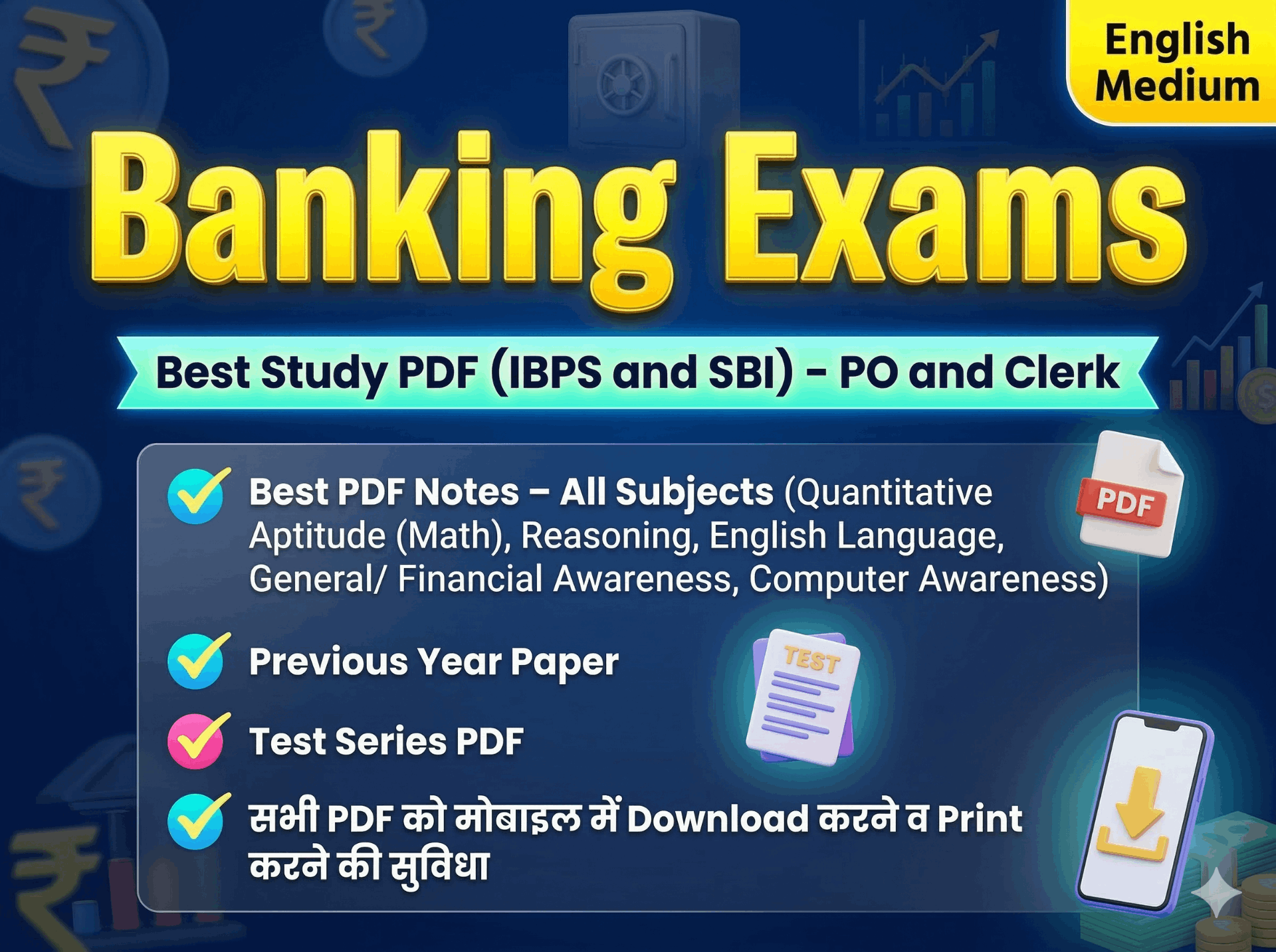 π₯ Make your Banking Exam Preparation Stronger! π₯ In this π₯ Banking Exams (IBPS & SBI) - PO and Clerk π₯ course, you will get complete and exam-oriented study material designed to help you succeed. π What you will get in this Course π― β οΈ Best PDF Notes for all subjects: β Quantitative Aptitude (Math) π§ Reasoning Ability π English Language π° General / Financial Awareness π» Computer Awareness β οΈ Previous Year Paper PDFs β for understanding exam pattern & practice π β οΈ Test Series PDFs β topic-wise & full-length tests π β οΈ All PDFs can be easily downloaded and printed from your mobile π²π¨οΈ π₯ Key Features: πThis course will be regularly updated with new PDF Notes and Test Series PDFs π πAll content is 100% exam-focused and designed to save your time β±οΈ πEasy to access on any mobile device π± π Enroll today and take your Banking Exam preparation to the next level! π Best wishes to all from Nitin Gupta ππ π Language: English π¬π§ π Duration: 1 Year β³