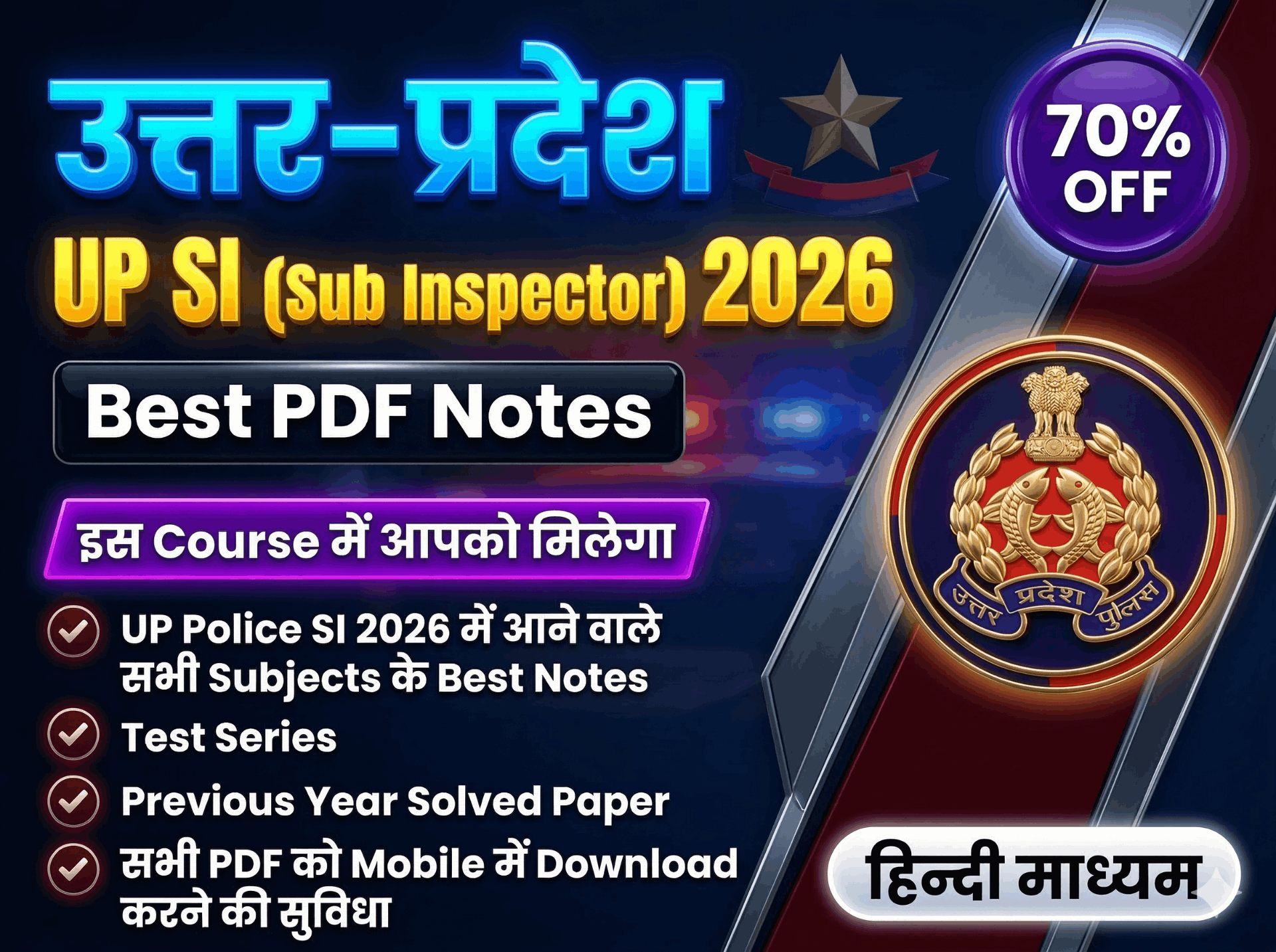 🔥 UP Police SI (Sub Inspector) Exam 2026 का Complete Solution 🔥 ✨ इस कोर्स में शामिल विषय: ✅️ General Hindi ✍️ ✅️ Law & Constitution + GK 📘 ✅️ Numerical & Mental Ability ➕➖ ✅️ Mental Aptitude, IQ & Reasoning 🧠 ✅️ Current Affairs 🌍 ✅️ Previous Year Paper ✅️ Test Series 👉 सभी PDF Notes को Mobile में Download करने व Print करने की सुविधा 📲🖨️ 🔥 यह कोर्स Regularly Update किया जाएगा और नए Notes Add किए जाएंगे, जिससे आपकी UP SI Exam तैयारी और मजबूत होगी। 👉 आज ही Join करें और अपनी तैयारी को Next Level पर ले जाएँ! 🚔💯 आप सभी को Nitin Gupta की ओर से All The Best! 🙏👍 📆 Duration: 1 Year 🌐 Language: Hindi Medium