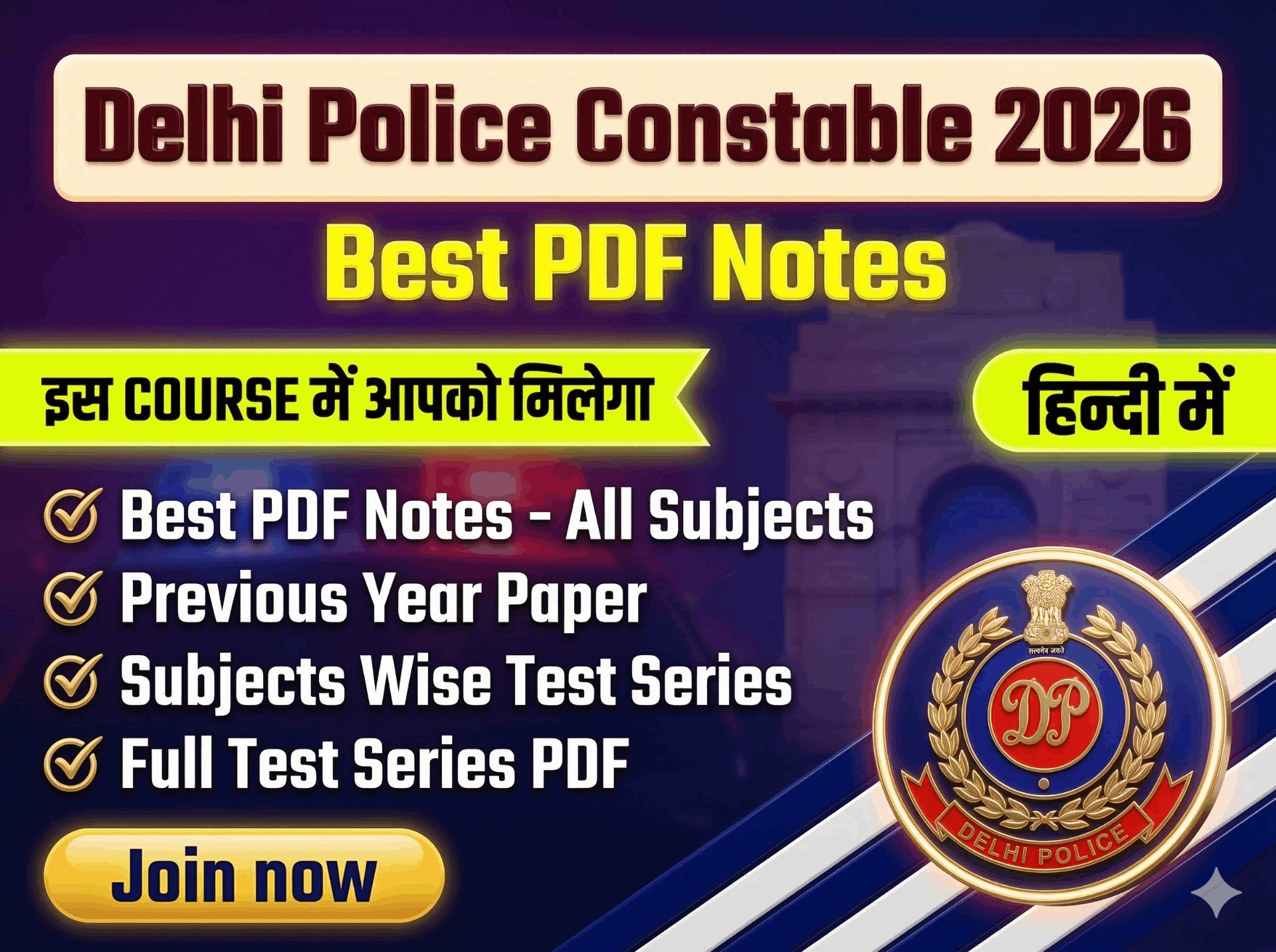 📘 कोर्स विवरण (Course Overview) यह कोर्स प्रदान करता है — Complete Study Material + Practice Tests + Monthly Current Affairs, जो पूरी तरह से नवीनतम SSC परीक्षा पैटर्न और अपडेटेड सिलेबस (2026) पर आधारित है। 📚 इस कोर्स में शामिल विषय: ✅ सामान्य ज्ञान एवं समसामयिक घटनाएँ (General Knowledge & Current Affairs) ✅ रीजनिंग क्षमता (Reasoning Ability) ✅ संख्यात्मक योग्यता (Numerical Aptitude / Mathematics) ✅ कंप्यूटर जागरूकता (Computer Awareness) ✅ टेस्ट सीरीज़ (Topic-wise & Full-Length Tests) ✅ पिछले वर्षों के हल प्रश्नपत्र (Previous Year Solved Papers) 📄 ✅ सभी PDF को मोबाइल में Download व Print करने की सुविधा 📲🖨️ 💎 कोर्स की मुख्य विशेषताएँ: 💠 नवीनतम Delhi Police Syllabus (2026) पर आधारित संपूर्ण अध्ययन सामग्री। 💠 सभी विषयों के लिए Best PDF Notes (Download + Print Friendly)। 💠 प्रत्येक विषय पर Topic-wise MCQs with Detailed Solutions। 💠 Current Affairs (मासिक अपडेट) के साथ नियमित Revision Material। 🔥 यह कोर्स क्यों खास है? यह कोर्स आपकी Delhi Police Constable 2026 परीक्षा तैयारी के लिए एक Complete Solution है। इसमें सभी विषयों के संक्षिप्त और परीक्षा-उपयुक्त नोट्स, हल प्रश्नपत्र और प्रैक्टिस टेस्ट शामिल हैं। 🧾 नए PDF Notes व Test Series PDFs समय-समय पर जोड़े जाएंगे, ताकि आपकी तैयारी हमेशा नवीनतम पैटर्न के अनुरूप बनी रहे। 🚀 आज ही जुड़ें और अपनी तैयारी को नई दिशा दें! Delhi Police में चयन का सपना अब आपके हाथों में है — सही कोर्स के साथ, सही दिशा में पढ़ाई शुरू करें। 🙏 आप सभी को नितिन गुप्ता की ओर से ढेर सारी शुभकामनाएँ! 👍 📆 अवधि (Duration): 1 वर्ष 🌐 भाषा (Language): हिंदी माध्यम